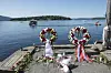 UTØYA: Kranser på kaia i Tyrifjorden 22. juli 2013, to år etter terrorangrepet på Utøya.Aleksander Andersen