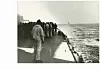MOT BUNNEN: Tyske soldater som har reddet seg i land ser på at Blücher synker.Foto: Wikimedia Commons