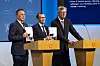 MOTTAKELSE: Forsvarsminister Tore O. Sandvik (t.h.), utenriksminister Espen Barth Eide og utvalgets leder Bjørn Tore Godal.Foto: Jo Straube, Forsvarets forum
