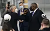MØTE: Natos generalsekretær Jens Stoltenberg hilser med albuen på USAs forsvarsminister Lloyd Austin i Natos hovedkvarter i Brussel 14. april.Johanna Geron, AP, NTB