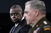 FORSVARSMINISTER: USAs forsvarsminister Lloyd Austin og forsvarssjef, general Mark Milley på en pressekonferanse i Pentagon.