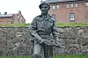 Inne på Akershus festning står statuen til Max Manus «gjemt» bort.