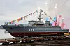 SJØSATT: Russlands nye minesveiper Dmitrij Lysov ble sjøsatt i St. Petersburg den 5. desember.