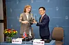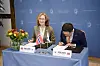 UNDERSKREVET: Torsdag skrev Gro Jære, direktør i Forsvarsmateriell, og konsernsjefen i Hanwha Aerospace, Son Jae-il, under avtalen i Oslo.Foto: Maria Jølle, Forsvarets forum