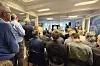 TRANGT: Flere enn lokalet var ment for, lot seg lokke til samtalen med tittelen «EU og Europa mellom Trump og Putin – fra fredsprosjekt til sikkerhetspolitisk prosjekt?».Foto: Jo Straube, Forsvarets forum