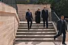 RUSLETUR: Barth Eide, kommunikasjonssjef i Tuva Bogsnes og norges ambassadør til Frankrike Vegar Brynildsen på veg til lunsj.Foto: Krister Sørbø, Forsvarets forum