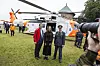 VELKOMST: Mannskapet om bord SAR Queen-helikopteret ble tatt imot av de ansatte som holder til på Jan Mayen. Her sammen med sjefstekniker Benedikte Thomassen, ingeniør Rebekka S. Paulsen og stasjonssjef Øyvind G. Nilssen.Foto: Forsvaret