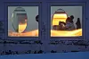 LIVET HELD FRAM: Ein frisør på jobb, sett gjennom vindauget i Nuuk onsdag 21. januar.Foto: Jevgenij Maloletka, AP
