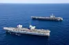 STOR GRUPPE: KNM Roald Amundsen er en del av et stort følge med både fregatter, hangarskip og kampfly på Stillehavet.