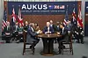 Avtalen omfatter utvikling av en ny flåte atomdrevne ubåter for den britiske og australske marinen, og ble signert i 2021. Den handler også om forsvarssamarbeid på en rekke andre felter, og regnes som et forsøk på å demme opp for Kinas økende innflytelse.