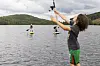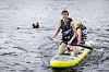 SJØSLAG: Veteransenterets padlebrett blir brukt til sjøslag når guttene får herje fritt. På bildet: Sigurd Øie, Daniel Sandsvik Aas og William Nordli .Foto: Jo Straube, Forsvarets forum