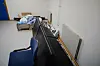 Den kvinnelige tillitsvalgte viser fram det felles vaskerommet, som ikke ser ut. Gulvet er direkte skittent, og støvet flyter over alt. Søppelet er heller ikke tømt på lenge.
