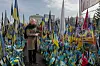 En minnelund for falne soldater i Moschun utenfor Kyiv.