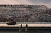 Soldatene beveger seg oppover åssiden på andre siden av veien for å unngå minefeltet, men plutselig høres det roping, og soldatene løper ned fra åssiden med geværpipene rettet oppover.