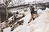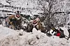 De tre fremste soldatene bever seg oppover åssiden, mens de bakerste krysser veien og venter i dekning. Men også dette laget må kaste seg bak snøfonna, da en av de fremste soldatene kommer løpende med en tourniquet på hver arm.