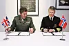 SIGNERING: Onsdag 25. februar signerte sjef Sjøforsvaret Oliver Berdal og First Sea Lord, Sir Gwyn Jenkins, en avtale som skal sikre videre samarbeid og integrering mellom britiske helikopter og norske marine- og kystvaktfartøy.Foto: Torbjørn Kjosvold, Forsvaret