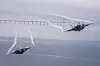 ØRESUND: To 35 kampfly ved Øresundsbroen i forbindelse med Danmarks flaggdag 5. september, for å hedre dansker som tjenestegjør i utlandet.Foto: Det danske forsvaret