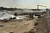 KRASJ: Redningsmannskaper var raskt på plass etter at et indisk HAL Tejas-jagerfly styrtet under Dubai Air Show ved Al Maktoum International Airport.