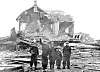 Ødeleggelse: Skolebarn med norsk flagg foran ruinene av skolen i Vadsø i 1944. (Foto: NTB/Scanpix)