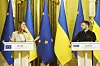 INITIATIV: Leder for EU-parlamentet Roberta Metsola på en pressekonferanse med Ukrainas president Volodymyr Zelenskyj onsdag.
