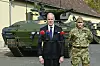 UNGARN FØRST UT: Ungarns forsvarsminister Kristof Szalay-Bobrovniczky under en seremoni for å markere at de første Lynx stormpanservognene var produsert, i oktober 2022. Først i desember 2025 ble de første tatt i operativ bruk.Foto: Szilard Koszticsak, MTI, NTB