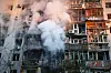 BRENNER: Boligblokken stod i full fyr etter det russiske droneangrepet på byen Zaporizjzja.