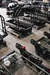 På innsiden av det som minner om en stor garasje er to sveisere i full sving. Deler er stablet på gulvet. Her lages alt av metall. Belter, belteverk og rammer.