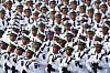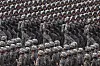 Kinas enorme samling av militære kjøretøy og tunge våpen rullet forbi de høytstående gjestene, mens bilder av tusenvis av soldater i plettfrie uniformer som marsjerte i tette rekker og soldater som hoppet inn og ut av kjøretøy, ble vist på statlig fjernsyn.