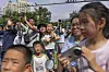 SKUELYSTNE: Innbyggere i Beijing gikk ut i gatene for å få et glimt av en spektakulær flyoppvisning med titalls krigsfly og helikoptre.Foto: Rafiq Maqbool, AP, NTB