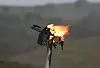 SKUTT NED: En drone som brenner etter et treff fra et laservåpen ved Camp Roberts i California.