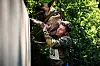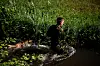 BADE: Deltakerne skal svømme over et vann i skogen.Foto: Hedvig Idås, Forsvarets forum