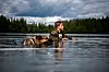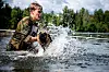 SJEF: Hunden er iskald og kontrollert under svømmeturen sin på vannposten.Foto: Hedvig Idås, Forsvarets forum