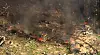 I FLAMMER: Området rundt fabrikken kan ses røyklagt og i flammer.