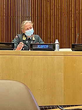 SIKKERHETSRÅDET: Gjerde holder innlegg i FNs sikkerhetsråd om situasjonen på Kypros i januar 2022. – Det var i den perioden Norge ledet Sikkerhetsrådet, sier hun. Foto: PrivatPrivat