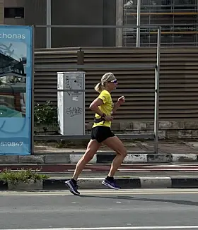 HALVMARATON: Gjerde er veldig glad i å løpe, da kobler hun godt av. Her fra halvmaraton i Limassol. Foto: PrivatPrivat