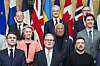 Landene kritiserer også Russland kraftig og mener landet trenerer en fredsprosess. De skriver også at presset mot Russlands økonomi og forsvarsindustri må økes, samt at de undersøker muligheter for å ta i bruk Russlands fryste midler i Europa for å støtte Ukraina.