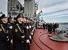 Russlands president Vladimir Putin besøker en øvelse med Nordflåten og Svartehavsflåten om bord i marinefartøyet «Marskalk Ustinov» i Sevastopol havn på Krim 9. januar 2020.