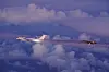 ÅRETS FØRSTE: Et av Norges F-35 (til høyre) identifiserte 6. januar et russisk maritimt rekognoseringsfly av typen Tupolev Tu-142 i nærheten av norsk luftrom.