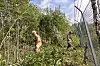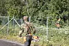 RYDDER SKOGEN: Da Forsvarets forum møtte Alexander og Sander, jobbet de med å rydde skog og kutte gress rundt gjerdene på flystasjonen.Foto: Maria Jølle, Forsvarets forum