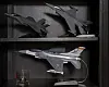 «SURF»: Simastuen har opparbeidet seg en samling med jagerfly han kan ha på utstilling hjemme . På bildet er en F-35 og en norsk F-16 og en amerikansk F-16. Legg merke til et eget glass med callsignet «Surf».Foto: Jo Straube, Forsvarets forum