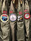 PATCHER: En liten samling norske flygerjakker med tilhørende patcher: Fra venstre er en jubileumspatch som markerer 6000 flytimer på F-16, skvadronmerke for 331 skvadron, RNoAF F-16 – patch fra 338 skvadron og merke for instruktører ved flygeskolen.Foto: Privat