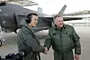 FØRSTEMANN: Morten Hanche var den første nordmannen som fløy kampflyet F-35. Dette bildet er fra den første flygingen. Her med daværende sjef for Luftforsvaret Per-Egil Rygg.Foto: Hanne Marie Maugesten, Forsvarets forum