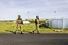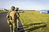 PATRULJE: Vaktsoldatene går rundt den norske og nederlandske leiren på basen i Poznan for å se at alt går fint for seg.Foto: Jo Straube, Forsvarets forum