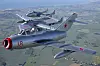 PRISVINNERE: De to Vampire-jagerne (FB-52 og T.55) som entusiastene i Flyvåpnets Historiske Skvadron i dag opererer (FOTO: FHS).