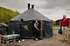 Ved en innsjø utenfor Kirkenes sentrum velter dampen ut av en stor badstue formet som en jurt, et sentral-asiatisk nomadetelt.