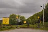 GRENSEN: Bak denne porten ligger grensen mellom Norge og Russland, som går mellom den rødgrønne og gule stolpen bak til høyre i bildet.