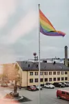 Ordfører Magnus Mæland har kjøpt det største pride-flagget han fant. I det gule bygget over plassen for rådhuset ligger det russiske konsulatet.