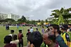 SKOLEGÅRD: Frivillige sperrer av området i Dhaka.