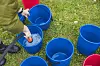 VANN: Når en er ferdig med løypen får man skylt øynene i tre bøtter. Dette er for å hjelpe helbredelsesprosessen. Foto: Krister Sørbø, Forsvarets forum.Foto: Krister Sørbø, Forsvarets forum