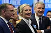 NEST STØRST: Lederen for ytre høyre-partiet Alternative für Deutschland (AfD), Alice Weidel, partihovedkvarteret i Berlin, i februar 2025. Partiet gjør det godt på de tyske meningsmålingene.Foto: Michael Probst, AP, NTB